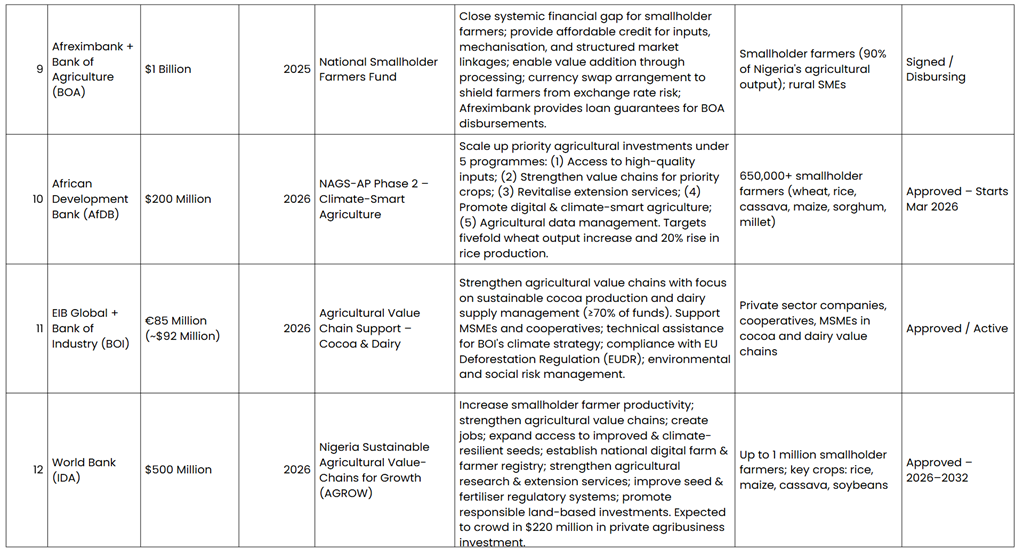 IDA financing is designed for the world’s poorest countries, offering highly concessional terms, little to no interest, repayment periods of 30–40 years, and grace periods that can stretch up to 10 years. The World Bank classifies Nigeria as a “blend” which means it can access both concessional and non-concessional funding, however the country has largely relied on concessional terms. Nigeria has accessed facilities in excess of US$20 billion from the IDA over the last 10 years with US$11.1 billion already disbursed. Nigeria’s agricultural sector has been one of the biggest recipients of these loans and this recent loan approval is not different – Project AGROW targets growth in key crops like rice, maize, cassava, soybeans, yam, and tomato by supporting smallholders with better input, technology, and market access. Just last month, the African Development Bank also approved a similar loan to Nigeria valued at $200 million. While the rising food insecurity provides a strong basis for these loans, despite these commitments from multilateral organizations, the industry is still largely driven by smallholder farmers using traditional methods.